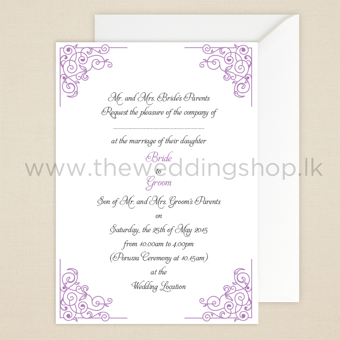 Envelope : Standard white paper envelope is included. If you need premium envelope, Please contact sales@theweddingshop.lk.